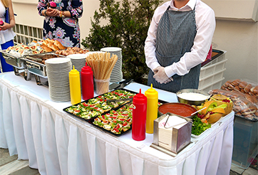 Τα τελευταία χρόνια, η ανάγκη του κόσμου για γευστικές επιλογές και στο κομμάτι της μαγειρικής, μας ώθησε στο επόμενο βήμα και συγκεκριμένα στην οργάνωση catering στον χώρο της επιλογής σας. Τηρώντας την φιλοσοφία του Ζαχαροπλαστείου - συνάρτηση τιμής και ποιότητας - δημιουργήσαμε μοναδικά μενού με γευστικότατες και πλούσιες επιλογές για εσάς.